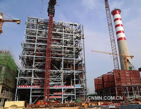 图为项目发电厂锅炉和烟囱高耸入云,预计年底前发电。